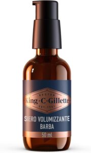 In Italia, il prodotto che emerge come riferimento per questa categoria è il siero King C. Gillette. Questo siero viene spesso descritto come addensante/volumizzante per la barba, e le informazioni sulle schede prodotto sottolineano la presenza di vitamina B3, pantenolo, un complesso di vitamine del gruppo B, caffeina e olio di argan. Le schede ne evidenziano la formula leggera, il rapido assorbimento e l’applicazione consigliata in piccole quantità su barba pulita. Tenere a mente questo modello è utile perché fissa uno standard: ingredienti rinforzanti, texture non grassa, applicazione quotidiana e un effetto più cosmetico che terapeutico.